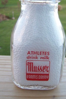 MUSSER PYRO 1/2 PT MILK BOTTLE COLUMBIA PA LANCASTER CO