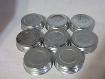 VINTAGE EIGHT BALL ZINC LIDS CAPS MILK GLASS MASON JARS