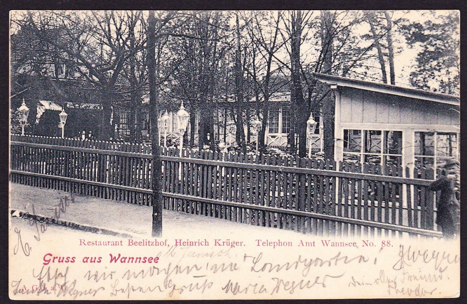 Gruss Aus Wannsee Germany Restaurant Beelitzhof Heinrich Kruger mailed 1902