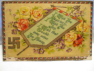 1910 POSTCARD GOOD LUCK SWASTIKA,I WISH YOU HAPPINESS