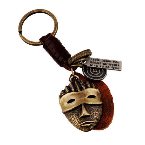 Title (ebay affiliate link): Vintage Punk Mask Key Chain Leather Keychains Men Women Keyring Car Key Pendant