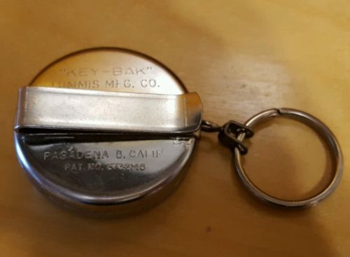 Title (ebay affiliate link): Key-Bak Vintage Retractable Key Chain, Lummis Mfg. Co. Pasadena, CA.