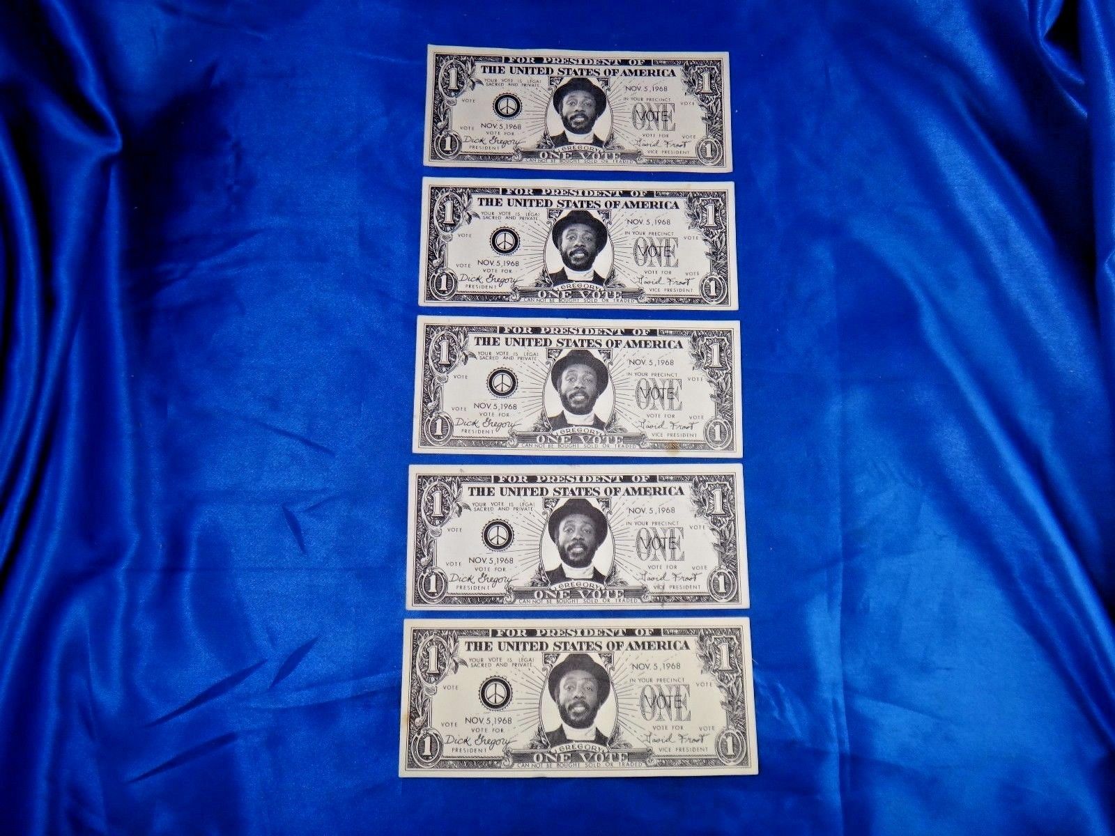 Title (ebay affiliate link): Vintage 1968 Dick Gregory For President $1 Dollar Bill Lot of 5