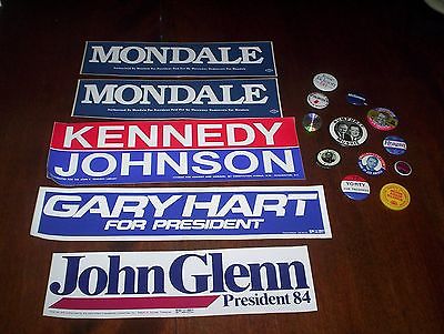 17 Lot of U.S. Presidential campaign Bumper Stickers & Pins Elections