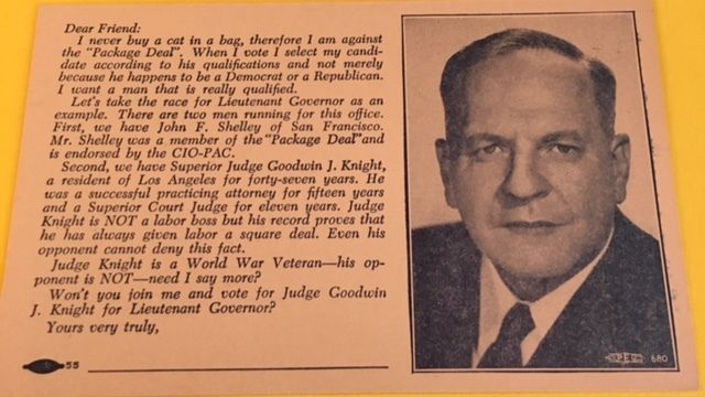 Title (ebay affiliate link): Judge Goodwin Knight for LT. Governor California Anti-CIO-PAC Post Card