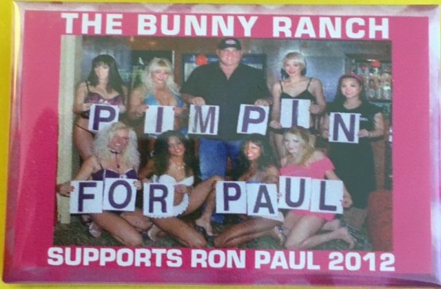 Title (ebay affiliate link): The Bunny Ranch Supports Ron Paul 2012 Political Campaign 2 by 3" Button