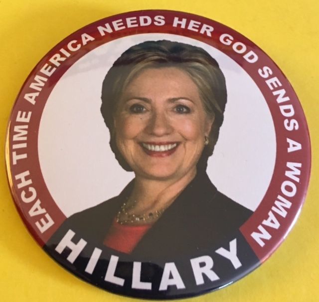 Title (ebay affiliate link): God Sends a Woman Hillary Political Campaign 3 Inch Pin Pinback Button