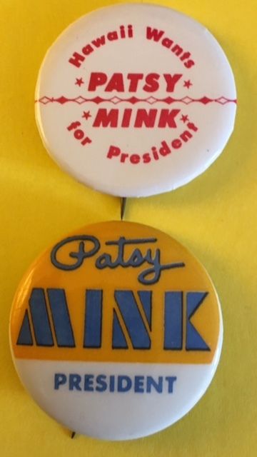 Title (ebay affiliate link): Two Patsy Mink for President 1 1/4 Inch Political Campaign Pin Pinback Buttons