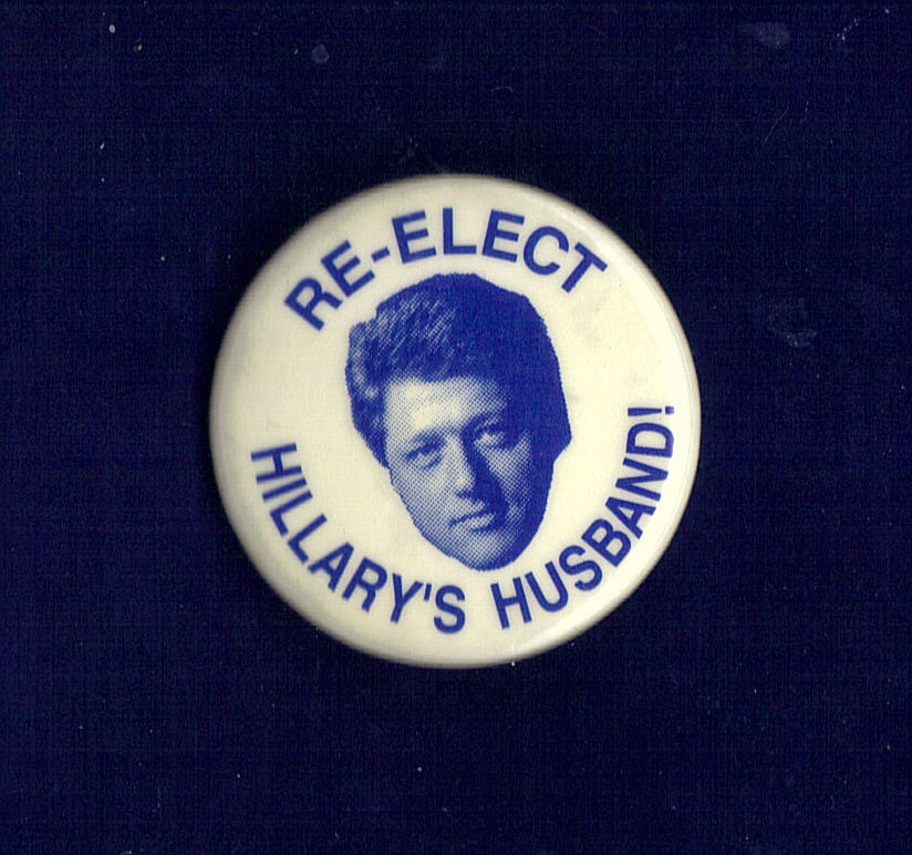 Title (ebay affiliate link): 1996 Bill Clinton 1-1/2" / "Re-Elect Hillary's Husband" Campaign Button