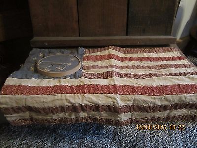 PRIMITIVE~FOLK ART~PATRIOTIC FABRIC STITCHED FLAG SAMPLER~ DISPLAY~~
