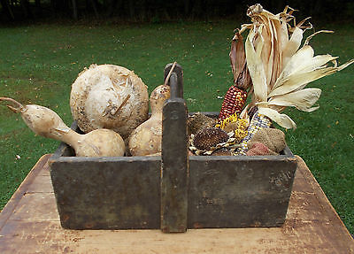 Title (ebay affiliate link): Primitive Farm House Gathering Old Wood Tool Tote Box With Dry Goods, Burlap Bag