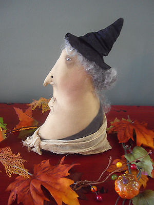 PRIMITIVE FOLK ART FALL HALLOWEEN AUTUMN HAND PAINTED WITCH BUST DOLL DECORATION
