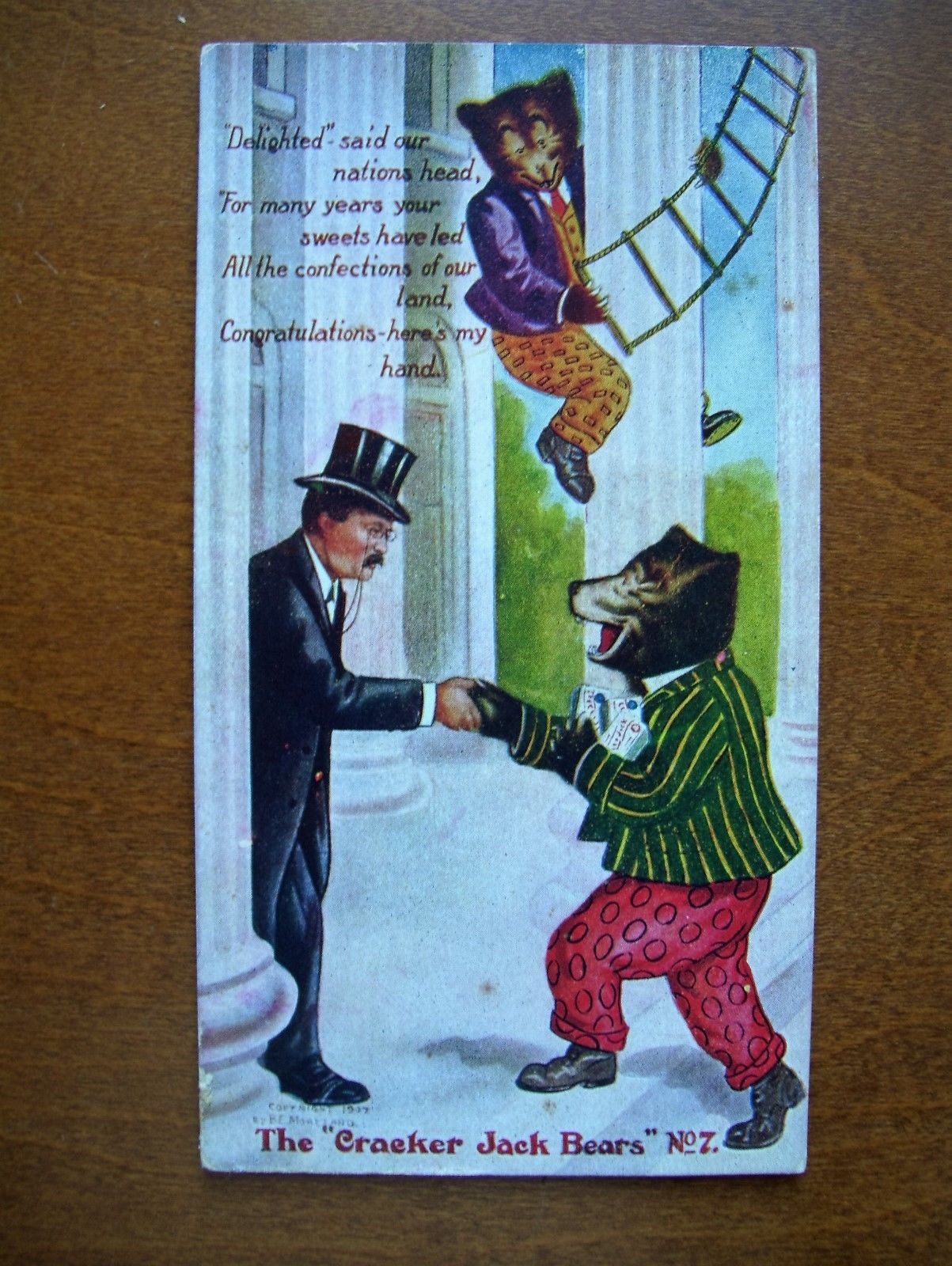 Title (ebay affiliate link): CRACKER JACK BEARS POSTCARD # 7 WITH PRESIDENT ROOSEVELT
