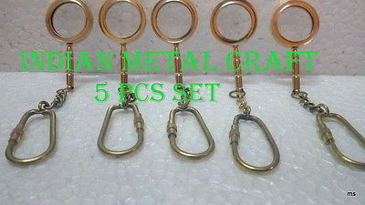 Brass Mini Magnifying Glass Key Rings Magnifier Bike Car Key chain set of 5 pcs