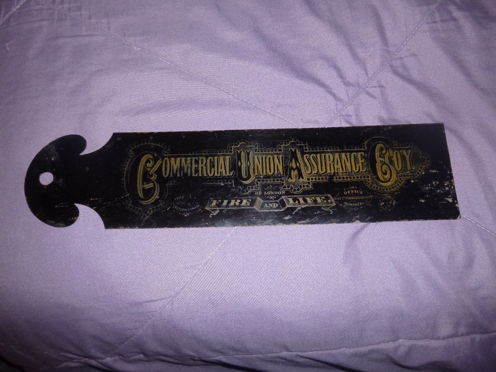 Title (ebay affiliate link): ANTIQUE METAL LITHO COMMERCIAL UNION ASSURANCE LEDGER MARKER SIGN L@@K