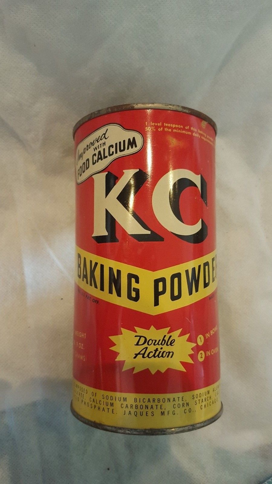 Title (ebay affiliate link): Vintage Tin, 25 Ounce KC Baking Powder Tin, Open and empty