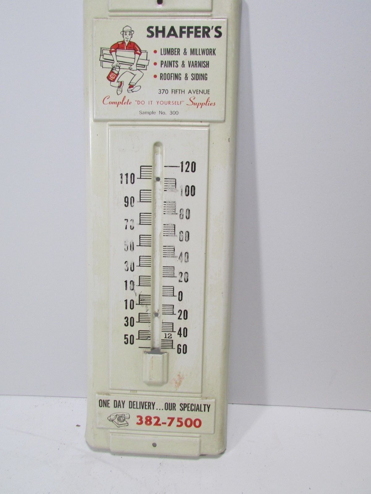 Title (ebay affiliate link): Vintage SHAFFER'S Lumber Yard Advertising Thermometer Cool Graphics 1950's Tin