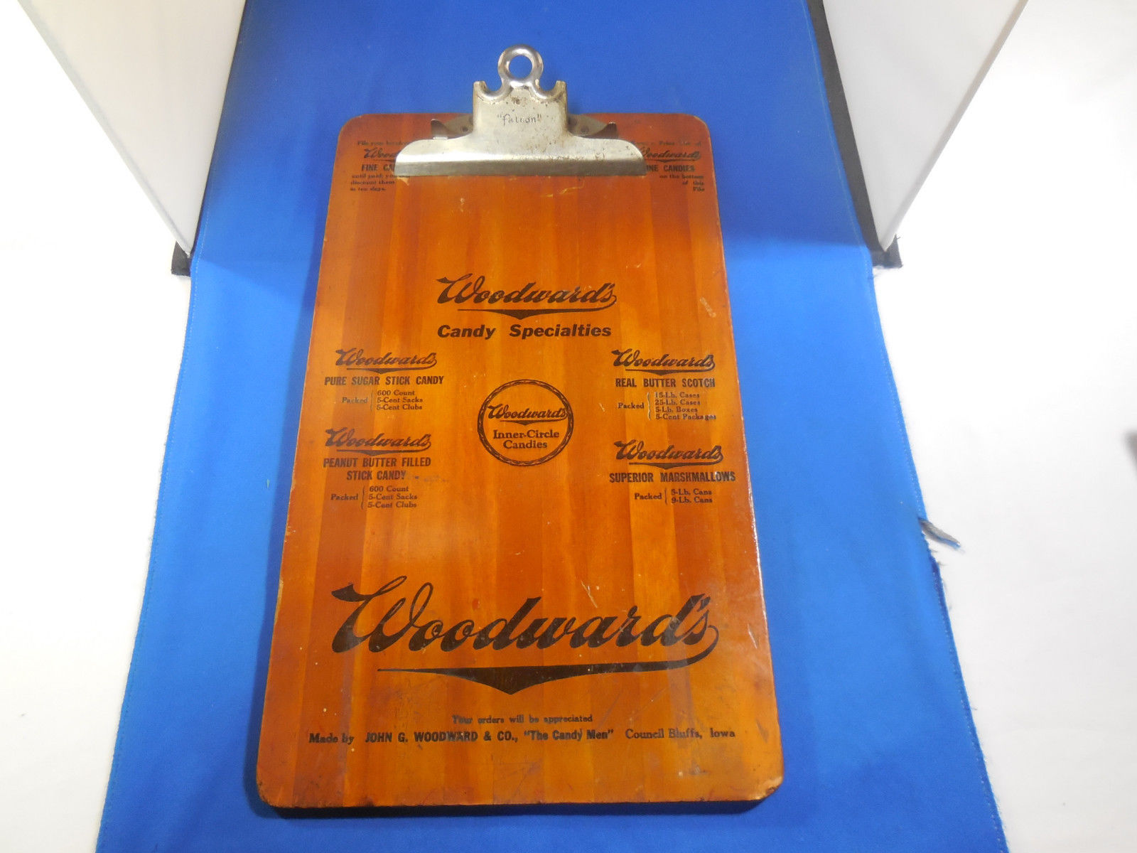 Title (ebay affiliate link): John G. Woodward & Co. Wooden Clip Board Advertising Premium Council Bluffs Iowa
