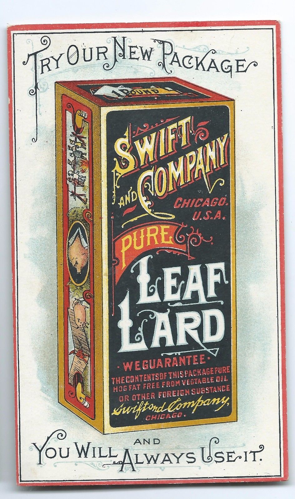 VICTORIA TRADE CARD,SWIFT & CO. CHICAGO,ILL.,,1893, LEAF LARD