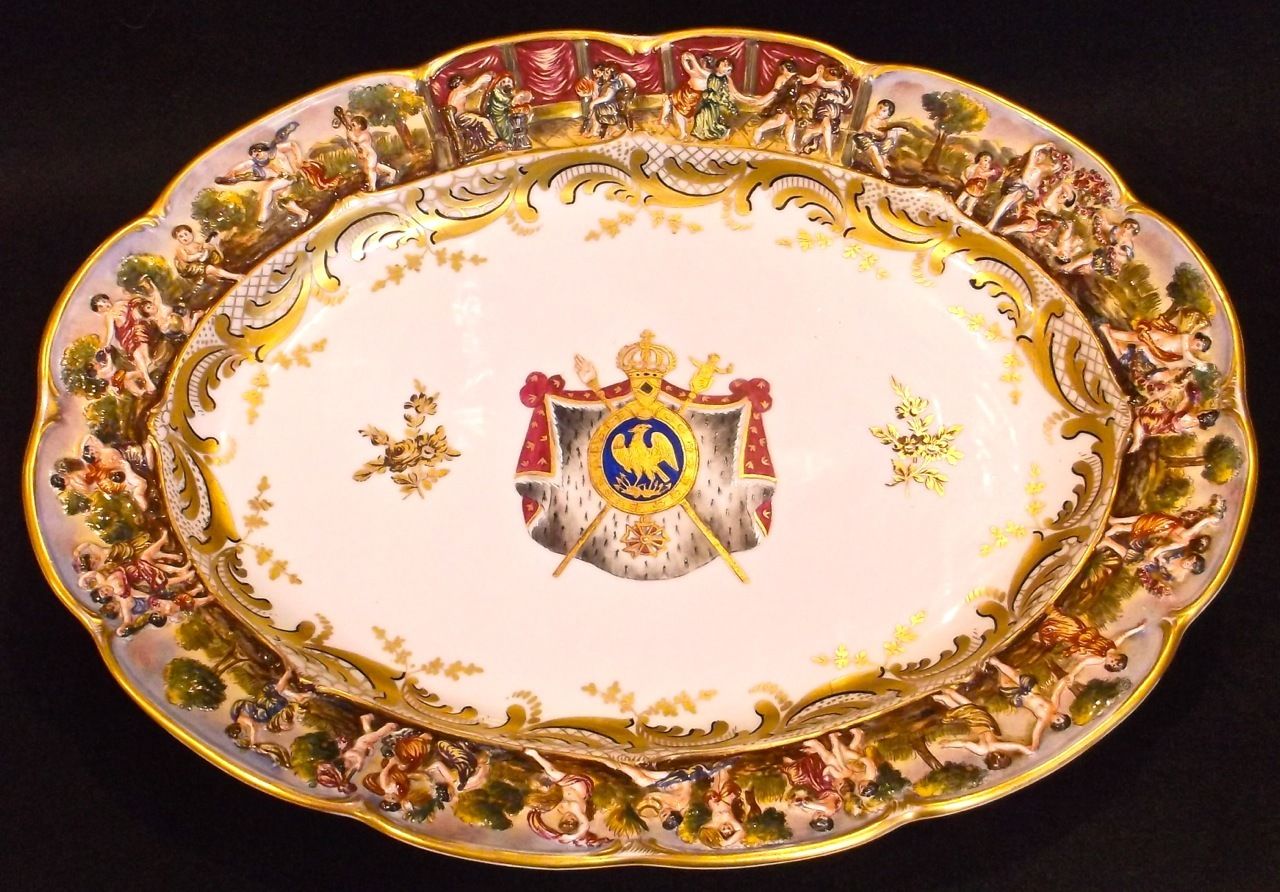 Title (ebay affiliate link): Large 19th Century Capodimonte Oval Platter, Napoleon II Imperial Coat of Arms