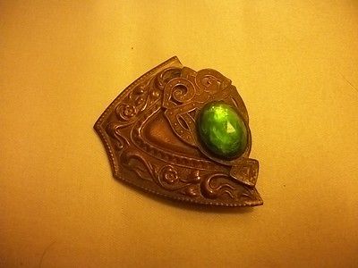 BUCKLE WITH GREEN STONE NICE METAL SCROLL WORK