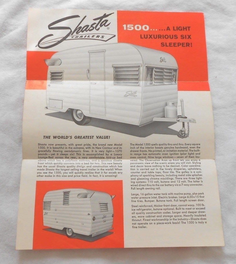 Title (ebay affiliate link): 1950's Shasta Travel Trailer Advertising Brochure - Model 1500