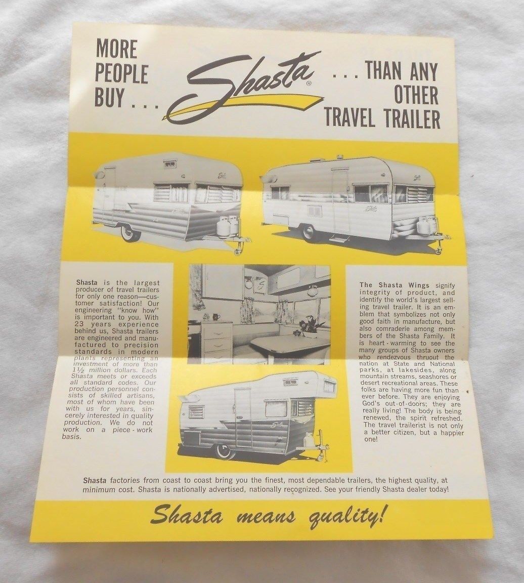 Title (ebay affiliate link): 1950's Shasta Travel Trailer Advertising Brochure - Full Line