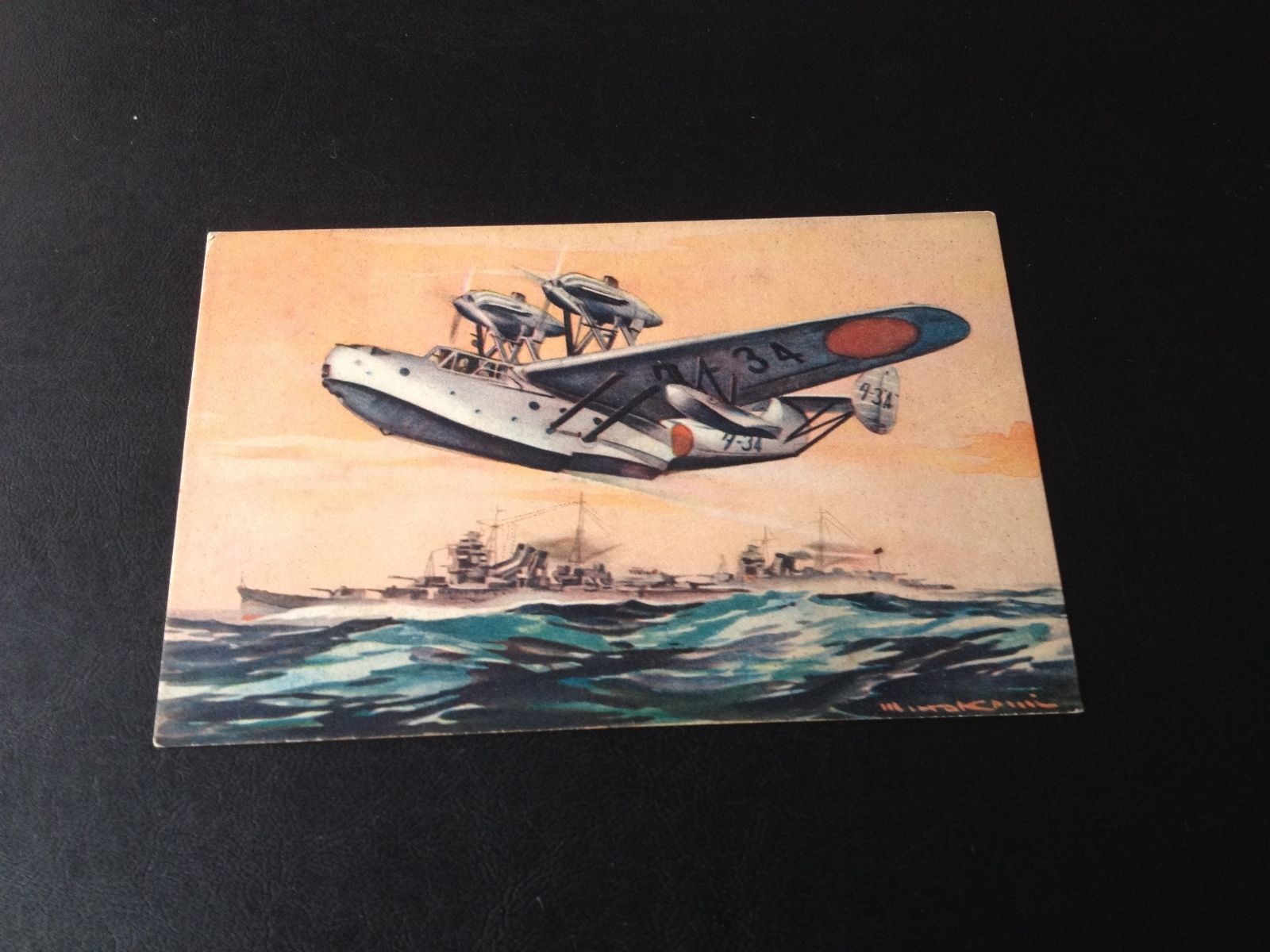 WW2 Japan pacific war drawing navy warship aircraft postcard
