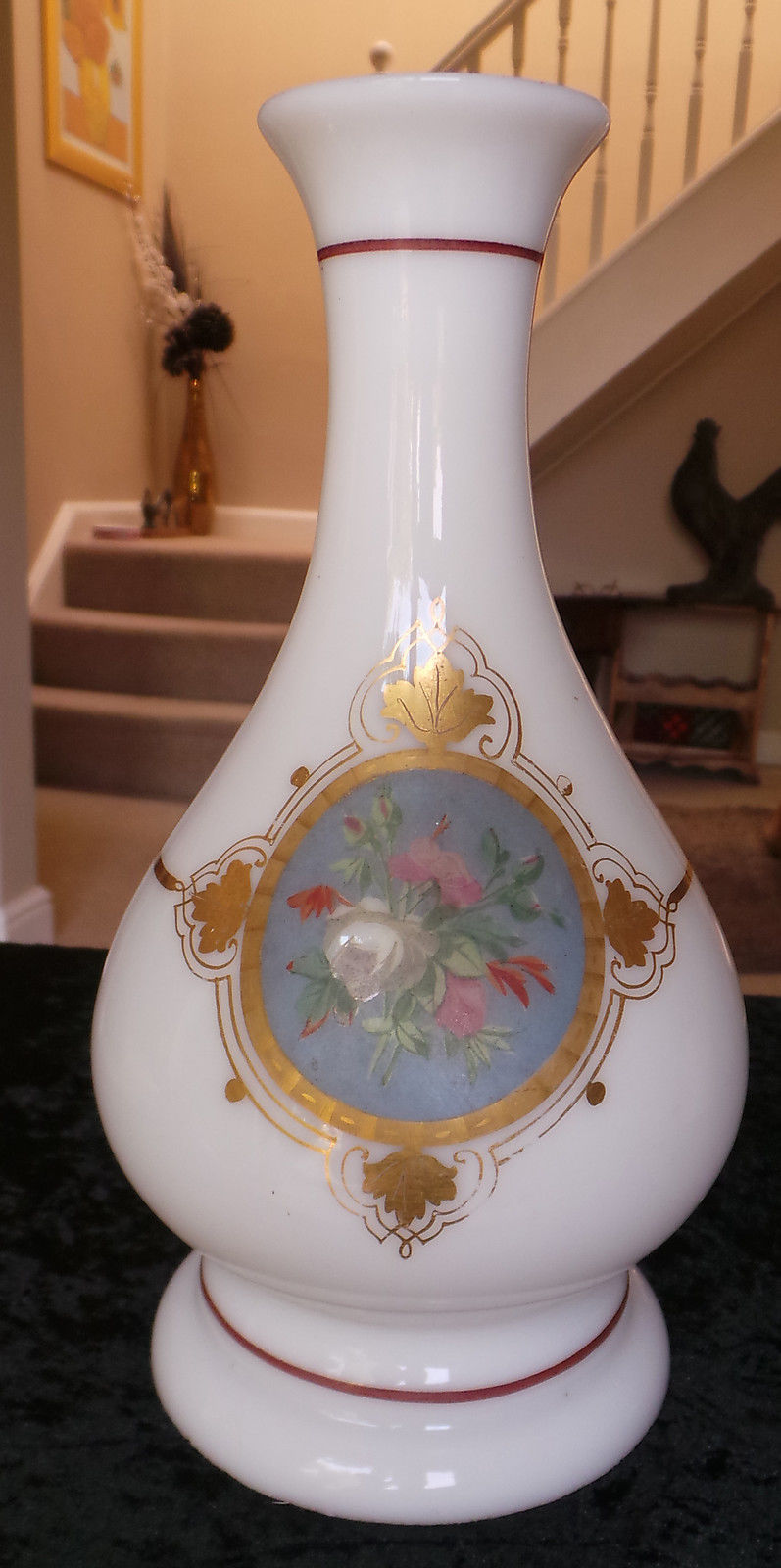 Title (ebay affiliate link): Vintage Milk Glass Oil Lamp Shade? with Transfers front & rear