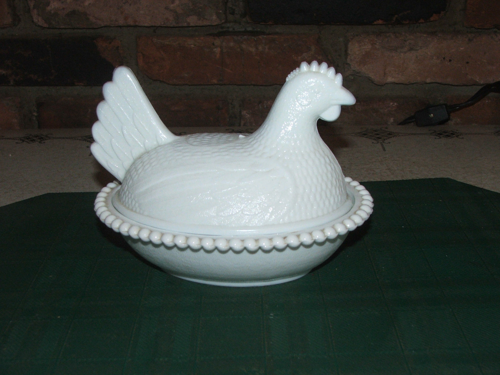 Title (ebay affiliate link): Vintage 7" White Milk Glass Chicken On Nest Basket Covered Bowl