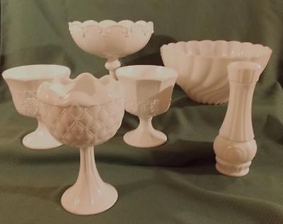 LOT OF 6 VINTAGE MILK GLASS GOBLETS / COMPOTES / BOWLS FOR WEDDING FLOWERS