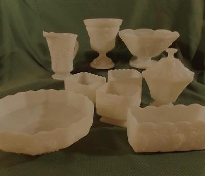 Title (ebay affiliate link): LOT OF 9 VINTAGE MILK GLASS VASES / PEDESTAL BOWLS FOR WEDDING FLOWERS
