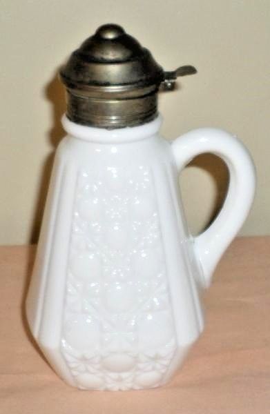 Title (ebay affiliate link): EAPG White Opal Milk Glass Syrup Pitcher Victorian Jug c.1890 Currier & Ives