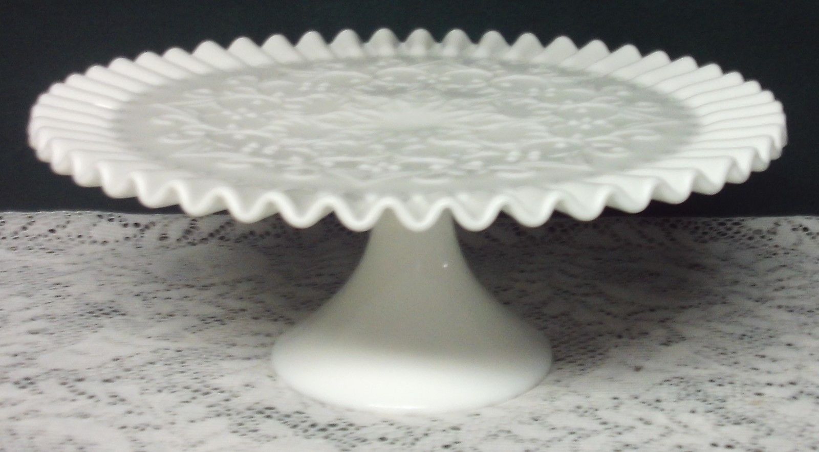 Title (ebay affiliate link): Vintage Fenton Spanish Lace Milk Glass Pedestal Cake Stand Plate