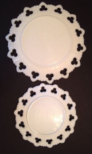 Title (ebay affiliate link): VINTAGE KEMPLE WHITE MILK GLASS SHELL AND CLUB PATTERN PLATE SET 7" And 9"
