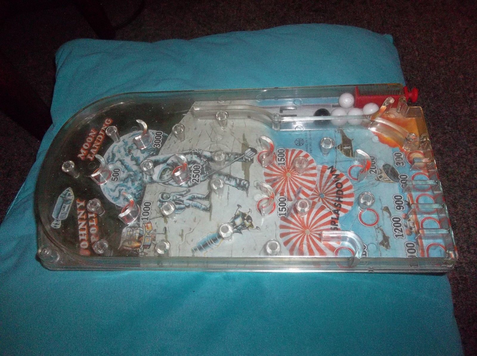 Title (ebay affiliate link): Vintage Marx Toys Johnny Apollo Moon Landing Hand Held Mini Pinball Game