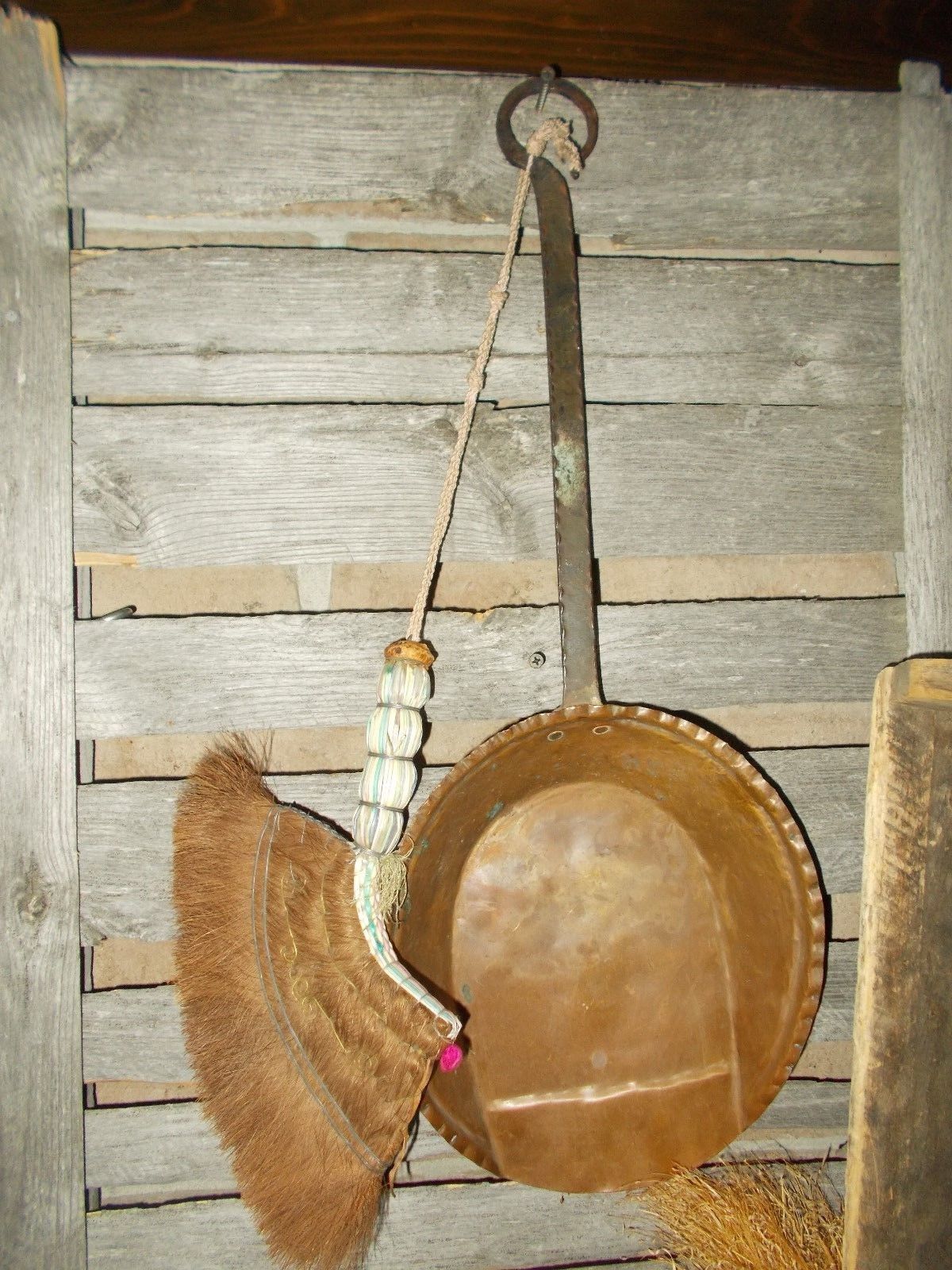 Title (ebay affiliate link): ANTIQUE COPPER FIREPLACE SCOOP-COAL SHOVEL W/ WHISK BROOM-HAND HAMMERED-A BEAUTY