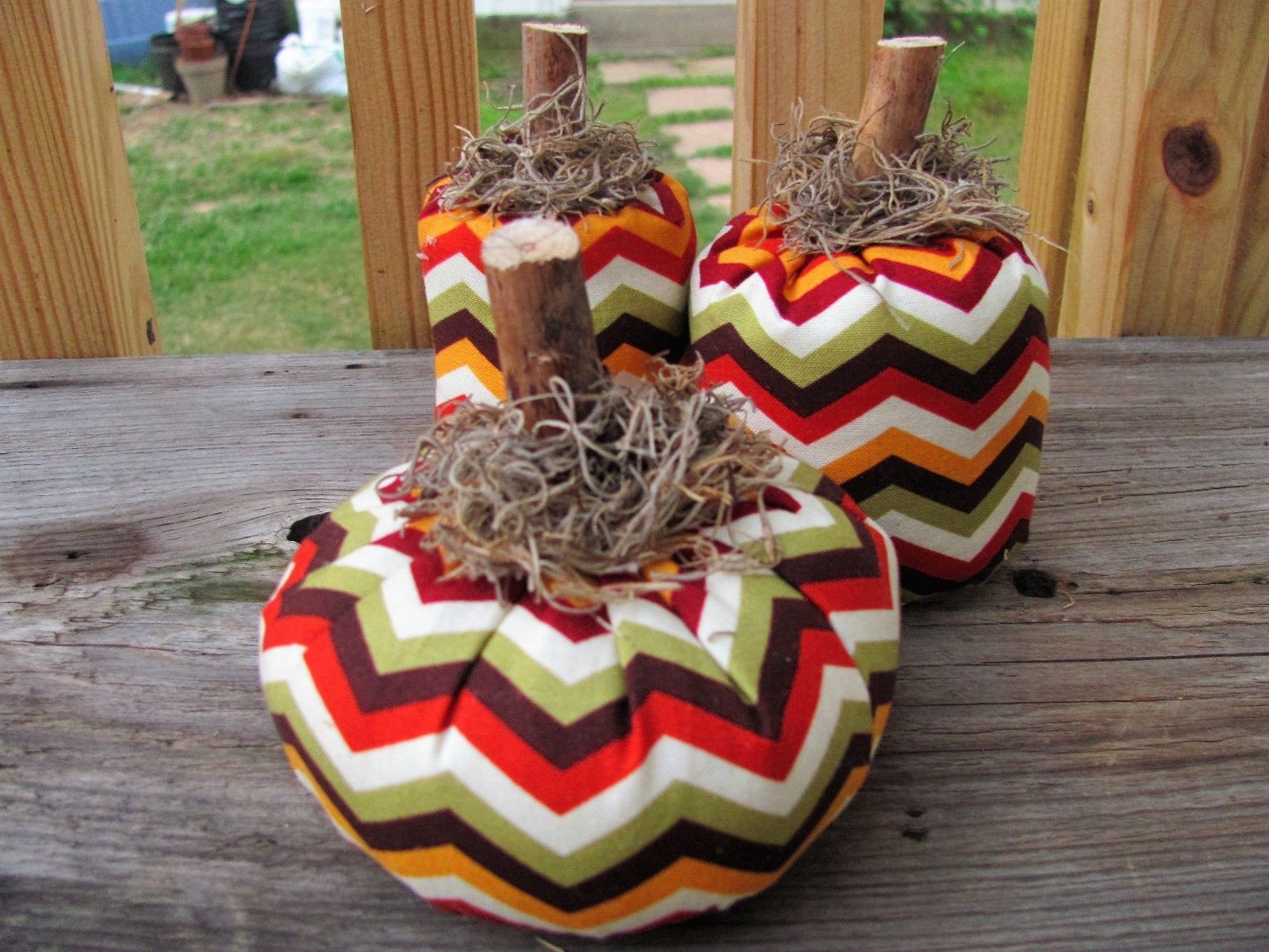 Title (ebay affiliate link): Primitive Fall Multi Color Chevron Pumpkin Ornies Shelf Sitter Cupboard Tuck