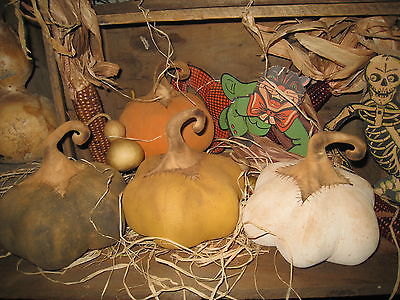 Primitive Halloween Grungy Folk Art Fall Pumpkins ~4 Smalls Old & Early Look ~