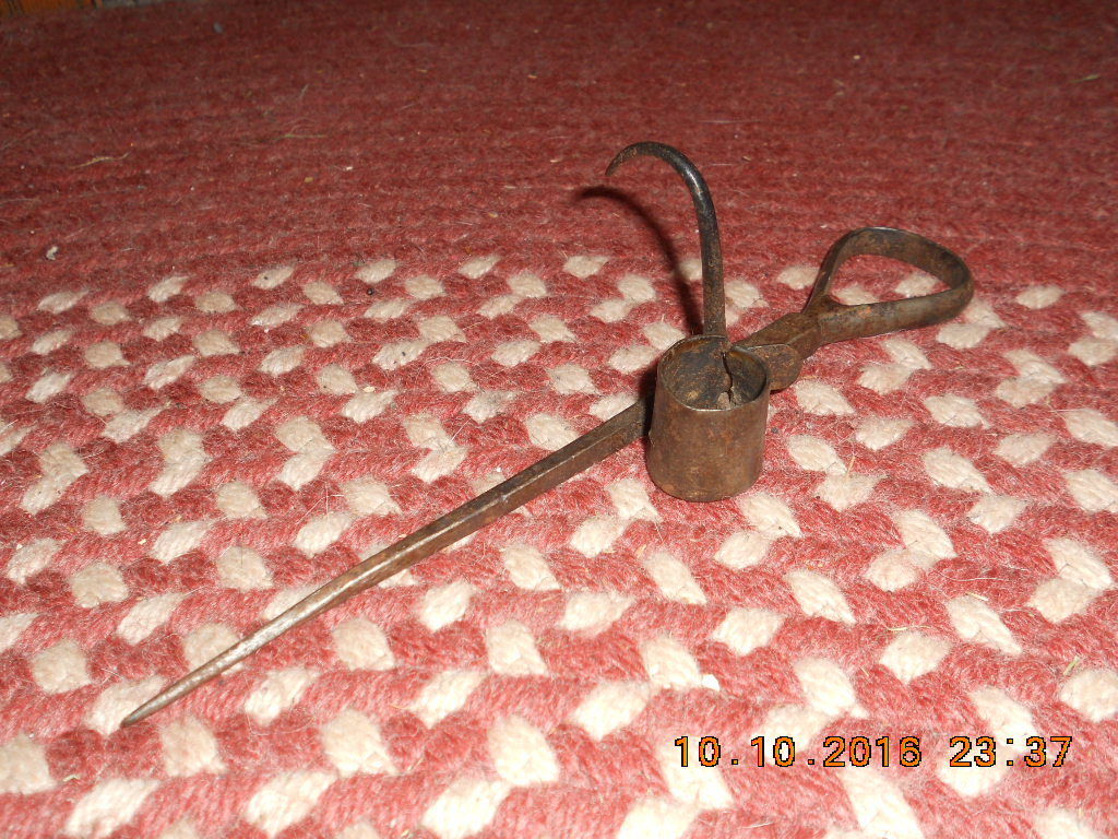 18TH TO EARLY 19TH CENTURY HF IRON STICK TOMMY CANDLESTICK SPIKE W CHAIR HOOK