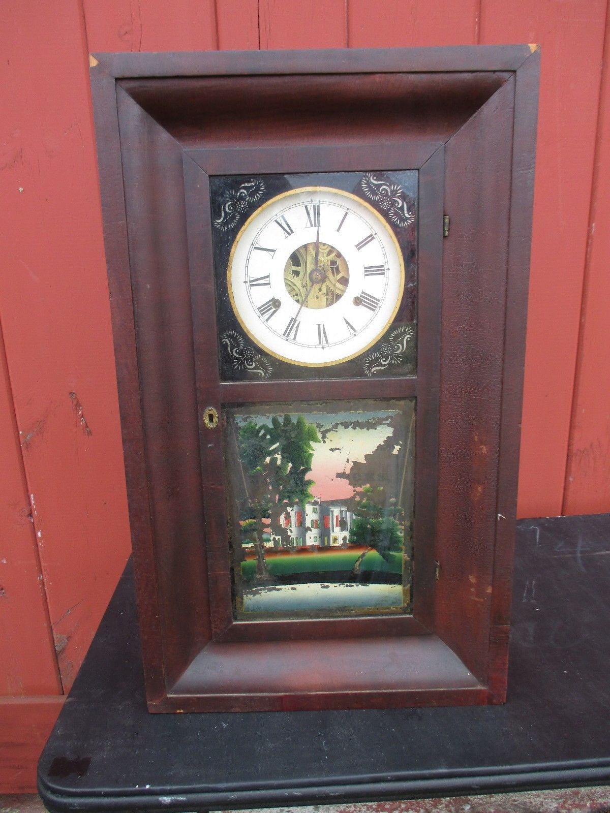 ANTIQUE JEROMES, GILBERT, GRANT WEIGHT DRIVEN CLOCK c. 1840 FOR PARTS OR REPAIR