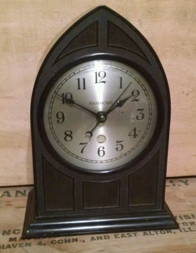 Title (ebay affiliate link): VINTAGE ANTIQUE HAMMOND CLOCK CATHEDRAL STEEP BAKELITE CLOCK