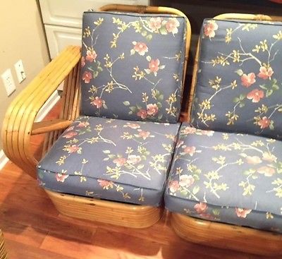 Pair of Vintage Curved Arm Bamboo Chairs