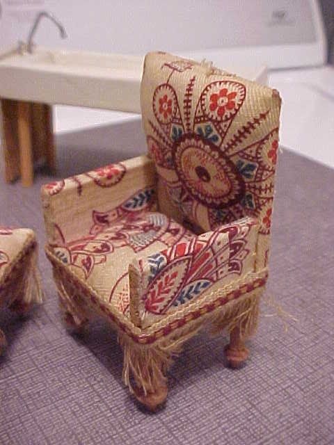 Title (ebay affiliate link): Antique handmade upholstered chair with fringe old sink dollhouse furniture