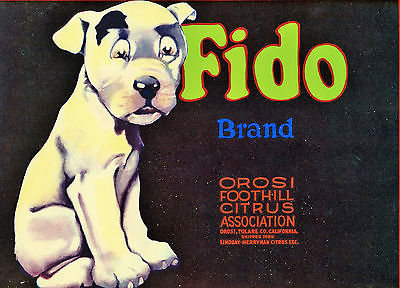 Title (ebay affiliate link): FIDO~PUPPY DOG~ORIGINAL 1930s RARE AUTHENTIC OROSI CAL. LEMON FRUIT CRATE LABEL
