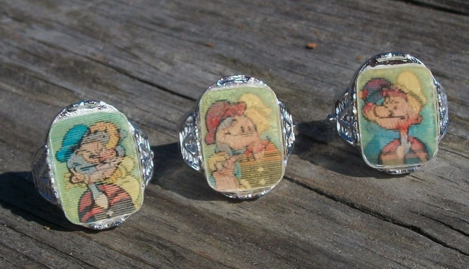 Title (ebay affiliate link): Vintage Popeye Flicker Rings Lot of 3 Gumball Charms Prizes Nr