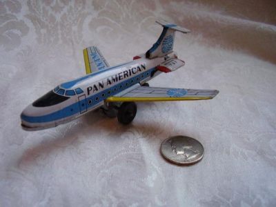 Old Friction Japan Tin Toy PAN AM 727 American AIRPLANE