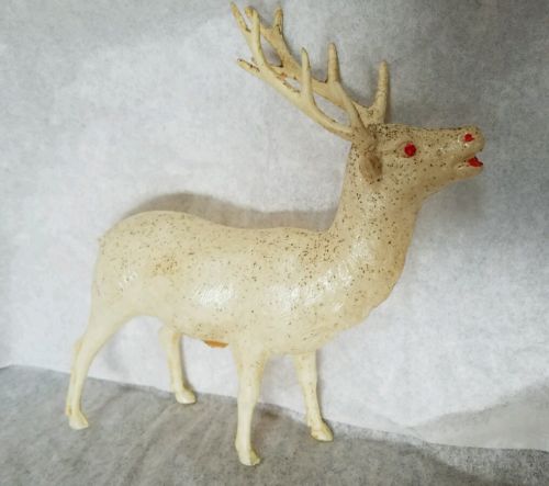 Title (ebay affiliate link): VINTAGE CHRISTMAS CELLULOID WHITE REINDEER MEDIUM GLITTER JAPAN PAPER LABEL