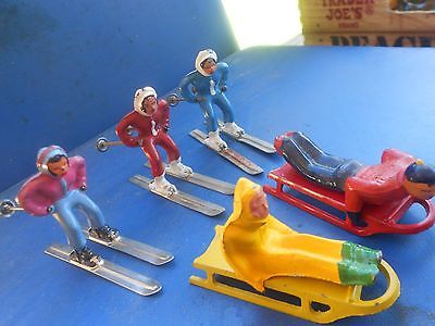 Title (ebay affiliate link): Barclay's Lead Vintage Winter Figures, Three Skiers & Two Sleddders Seven Pieces