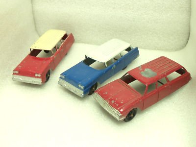3 VINTAGE DIE CAST TOOTSIE TOY CARS WAGON SEDAN 2 RED